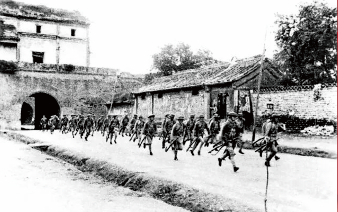 1937年7月7日,日本军队在Wanping City附近的Lugou Bridge发起了军事挑衅,并轰炸了Wanping County,这是“ 7月7日事件”(也称为Lugou Bridge事件)。图片显示,中国军队代替城市离开城市与日本军队作战。